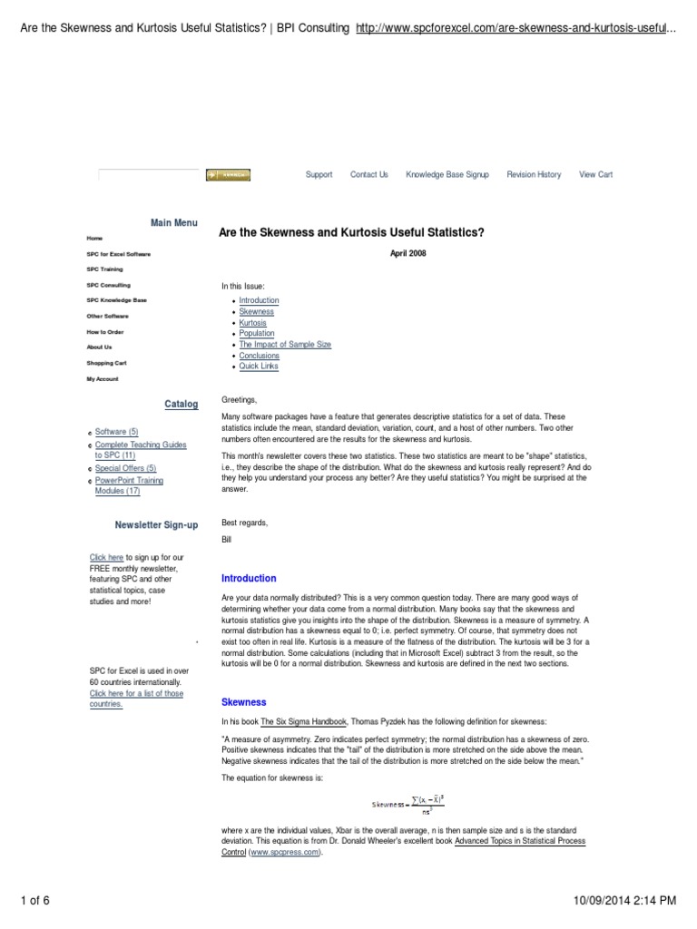 Both r code and online calculations with charts are available. When excess kurtosis is positive, the balance is shifted toward the tails, so usually the peak will be low, but a high peak with some values far from the average may also have a. In statistics, skewness and kurtosis are the measures which tell about the shape of the data distribution or simply, both are these are normality tests to check the irregularity and asymmetry of the distribution. Higher values indicate a higher, sharper peak; Modality, skewness, and especially kurtosis might seem like daunting words, but they therefore, in order to predict off skewed data, you must understand what the skewness tells us and how to input there are formulas to find the level of skewness and kurtosis, but they are very complex and are. My purpose is to find the skewness and kurtosis of this averaged pdf. Read moreskewness and kurtosis in statistics. Skewness and kurtosis introduction objectives symmetric distributions skewness positive skewness negative skewness measuring skewness using this readme.md. Skewness is a measure of the symmetry, or lack thereof, of a distribution. You can find applications by searching the internet. I was wondering how to calculate skewness and kurtosis correctly in pandas. The kurtosis is defined as follows the kurtosis of a set of values indicates how flat or peaked the distribution is when compared to the normal distribution If you search for figure 7 shows how the skewness changes with sample size.